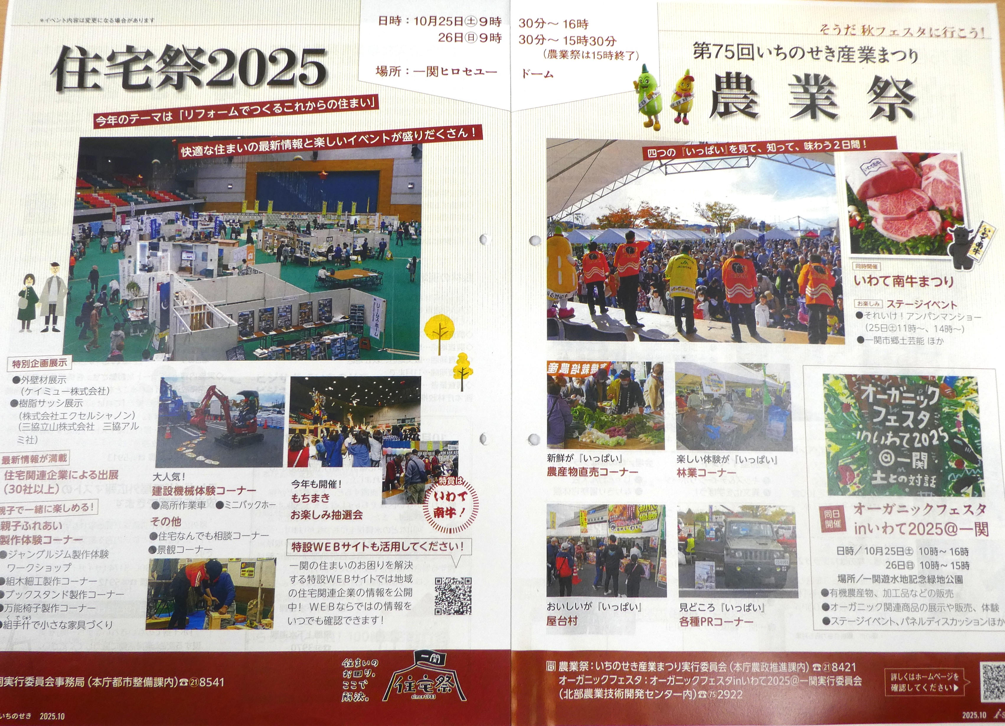 さらに来週、10/25(土)・26(日)には、一関ヒロセユードームにて、住宅祭・農業祭が行われます。