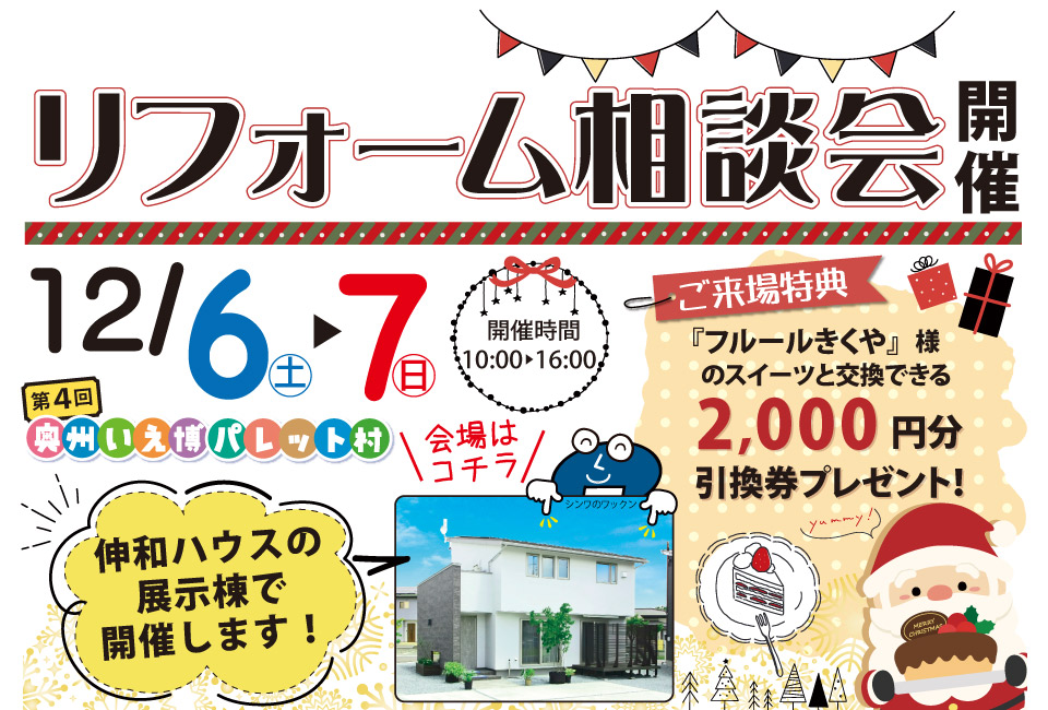 リフォーム相談会開催します! ■開催日:令和7年12月6日(土)・7日(日) ■開催場所:...