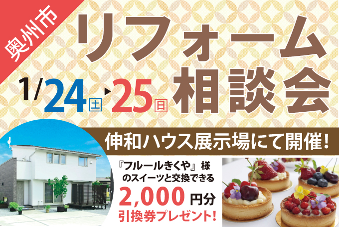 リフォーム相談会開催します! ■開催日:令和8年1月24日(土)・25日(日) ■開催場所:...