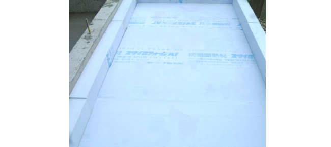 ▲基礎:押出法ポリスチレンフォーム保温板B類Ⅲ種(立上がり厚さ100㎜・敷込み厚さ50㎜)